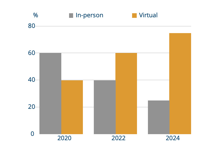 Jeder, der die Veränderungen im Bereich “Smart Working” genau verfolgt, wird mir zustimmen, dass das Thema Video den UCC-Markt zu dominieren scheint. Diese Beobachtung wird auch von Statistiken gestützt. Laut Gartner wird der Anteil persönlicher Gespräche im Arbeitsumfeld auf nur 25% sinken – zugunsten virtueller Besprechungen.