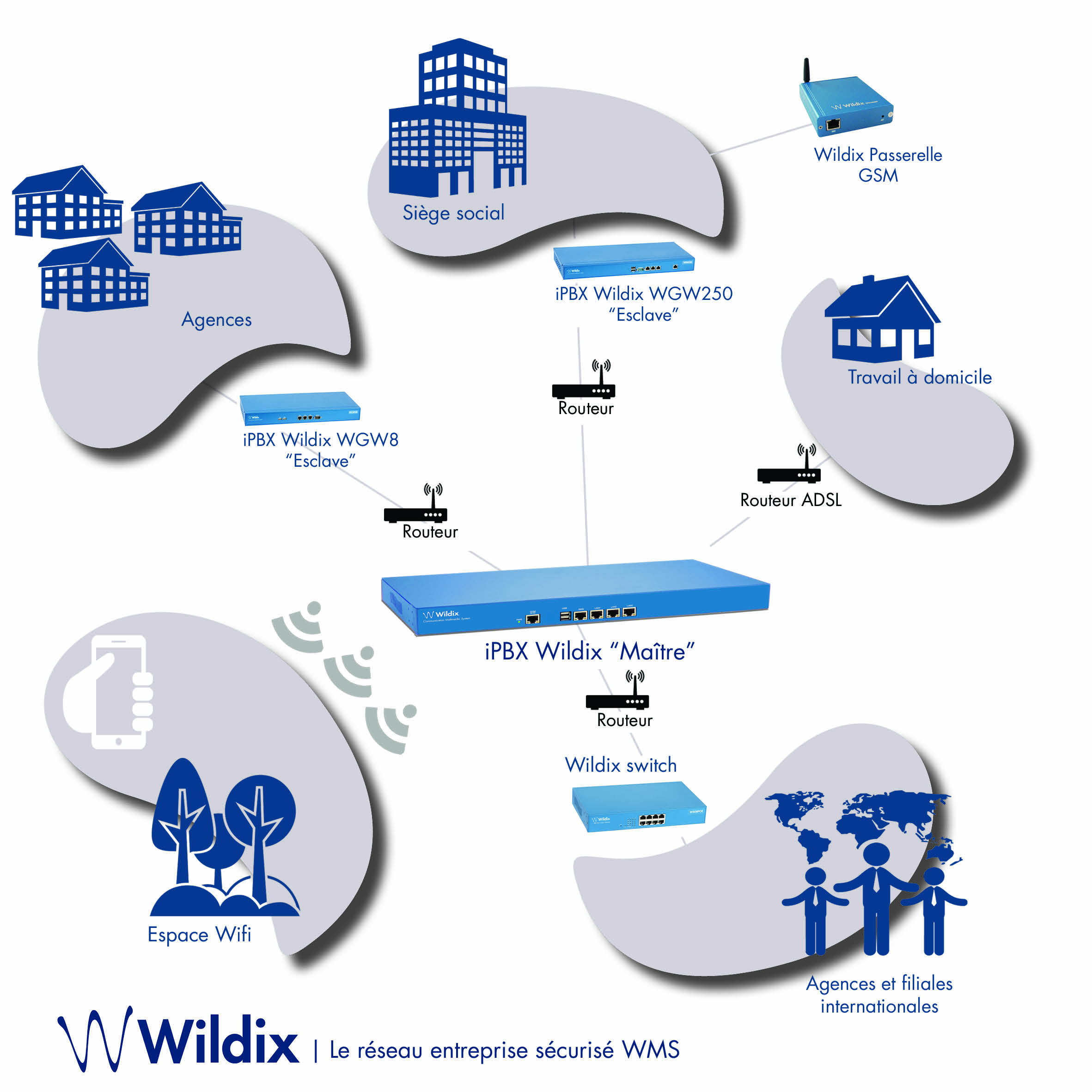 Le collaborateur X peut se déplacer entre les sites sans changer son numéro de poste et ses préférences utilisateur. Encore mieux si notre collaborateur X en déplacement à l’extérieur contact ses collaborateurs via l’application mobile Wildix Collaboration depuis un réseau Wifi, ses communications sont alors considérées internes au réseau et donc routé par l’iPBX Wildix Maître. Elles sont alors complètement GRATUITES.