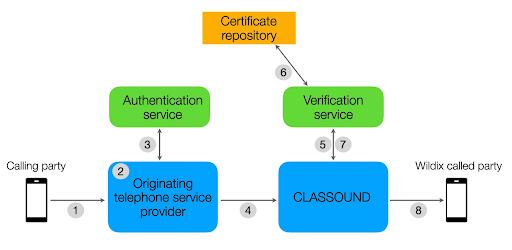 Listed out, the path that STIR/SHAKEN takes on a Wildix CLASSOUND system flows like this: