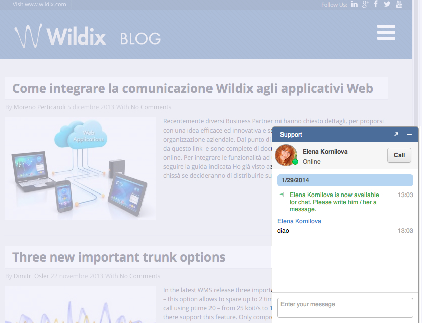 Wildix WebRTC Kite expands the horizons for e-commerce business by offering real time means of communication for online customers directly via the browser, without software installation, registration, email authorization and without a phone.